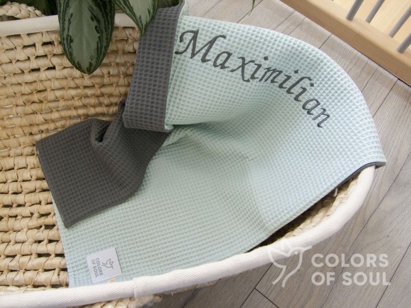 Babydecke - Waffelpique pastelmint / Waffelpique steingrau